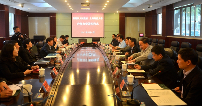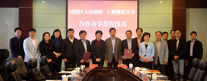 根据《上海师范大学深化综合改革方案》《上海师范大学十三五发展规划》战略部署,学校在扩大附属学校品牌效应方面继续做出重大行动。5月4日上午,上海师范大学与普陀区人民政府合作办学签约仪式在徐汇校区外宾楼101会议室隆重举行。普陀区委书记施小琳,副书记、区长周敏浩,区副区长张伟;校党委书记滕建勇,校长朱自强,副校长柯勤飞;普陀区区委办、区府办、区教育局等单位负责人,校办公室、教务处、基教中心等部门负责人出席。柯勤飞主持仪式,朱自强、周敏浩分别代表学校和普陀区在合作办学协议上签字,滕建勇、施小琳分别作了重要讲话。