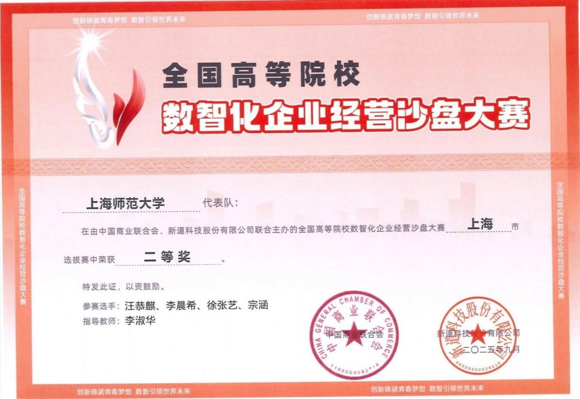近日,由中国商业联合会主办的2025年全国高等院校数智化企业经营沙盘大赛上海市赛在上海外国语大学贤达经济人文学院崇明校区开展。我校建筑工程学院两支学生代表队参赛,由汪恭麒、李晨希、徐张艺、宗涵同学组成A16小队和由彭琪婷、靳宋琳、刘忠博、熊景同学组成B13小队,其中A16小队成员在指导老师李淑华的带领下,凭借稳定的经营表现与科学的决策规划,从众多参赛队伍中脱颖而出,获得市级二等奖并晋级国赛。