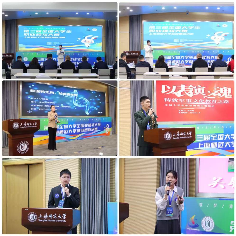 为深化大学生职业生涯教育,引导学生科学规划学业与职业发展,提升就业竞争力与综合素质,第三届全国大学生职业规划大赛上海师范大学校内总决赛于近日举办。本届大赛以“筑梦青春志在四方,规划启航职引未来”为主题,紧密围绕“以赛促学、以赛促教、以赛促就”的目标,设立了“就业赛道”与“成长赛道”,全面覆盖不同学段学生,提供了展示、交流与提升的重要平台。