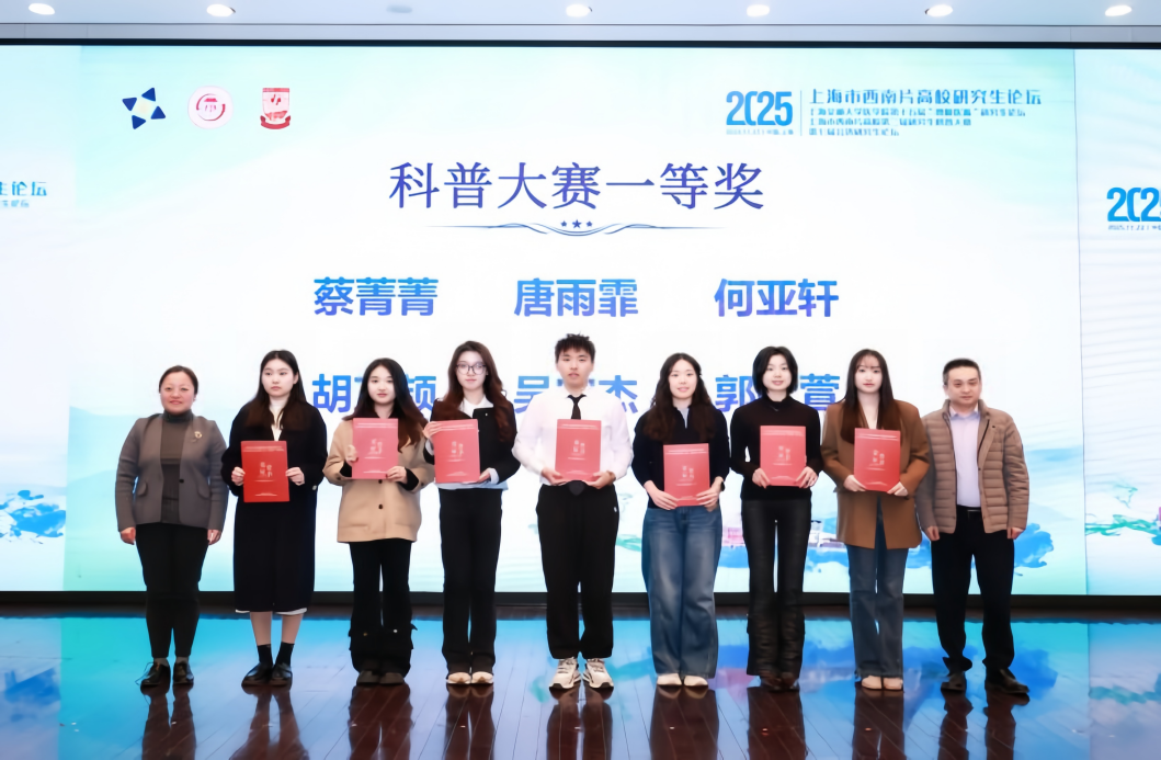 近日,上海市西南片高校研究生论坛暨第二届研究生科普大赛顺利落下帷幕。作为区域内研究生科普工作的重要平台,本次赛事致力于构建跨学科学术交流纽带,弘扬科学精神,推广科学方法,吸引了多所高校的优秀研究生积极参赛。由我校研究生工作部和研究生院遴选推送,来自上海退役军人学院学科教学(思政)专业的唐雨霏、刘思源、潘美莲、汪晨与体育教学专业的贾凡同学,在纪沉希老师的悉心指导下,凭借出色的表现荣获大赛一等奖。