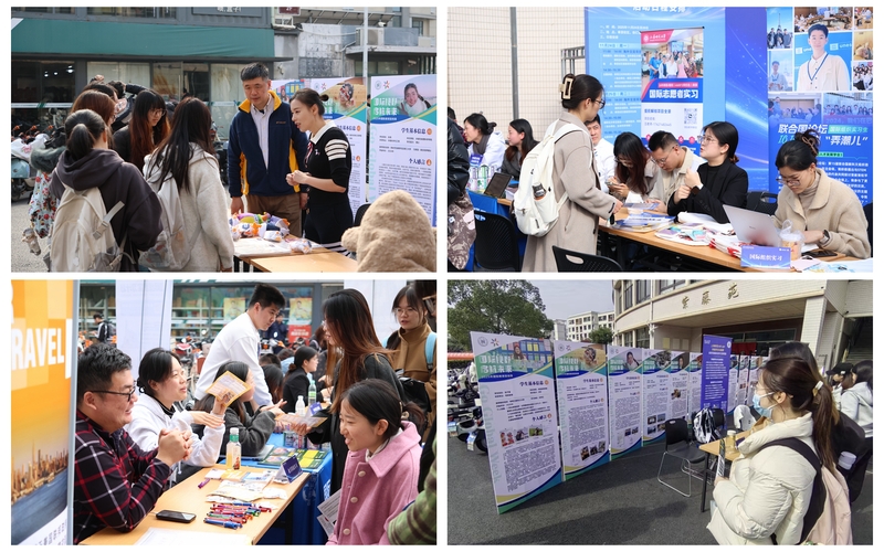 活动期间,国际交流处邀请十余家海外合作单位现场设展,提供一对一的咨询服务。同步在奉贤校区紫藤苑学生街及线上平台展出的“海外留学优秀学生成果展”,以生动榜样激励学子勇于跨越地理边界,在多元文化的碰撞中寻求能力提升与学业成功。