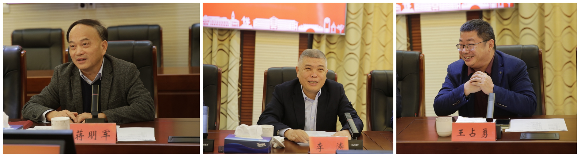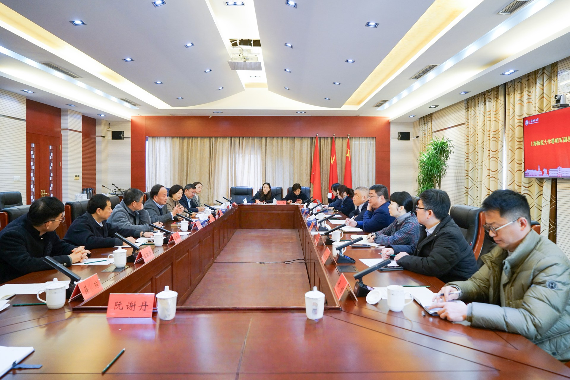 12月17日上午,海湾大学城产教融合共同体第三次联席会议在奉贤校区行政楼二楼会议室召开,就区校企协同创新、校地资源共享等议题进行深入探讨。校党委常委、副校长、奉贤校区管委会主任蒋明军参加会议。华东理工大学副校长、奉贤校区管理委员会主任李涛、上海应用技术大学党委常委、副校长王占勇、华东理工大学奉贤校区管委会办公室主任王爱祥、上海应用技术大学党政办主任王真、上海旅游高等专科学校副校长池春荣、海湾旅游区管理委员会党工委书记姚红等高校和地方政府部门代表出席了会议。会议由奉贤校区管理委员会副主任施家仓主持。
