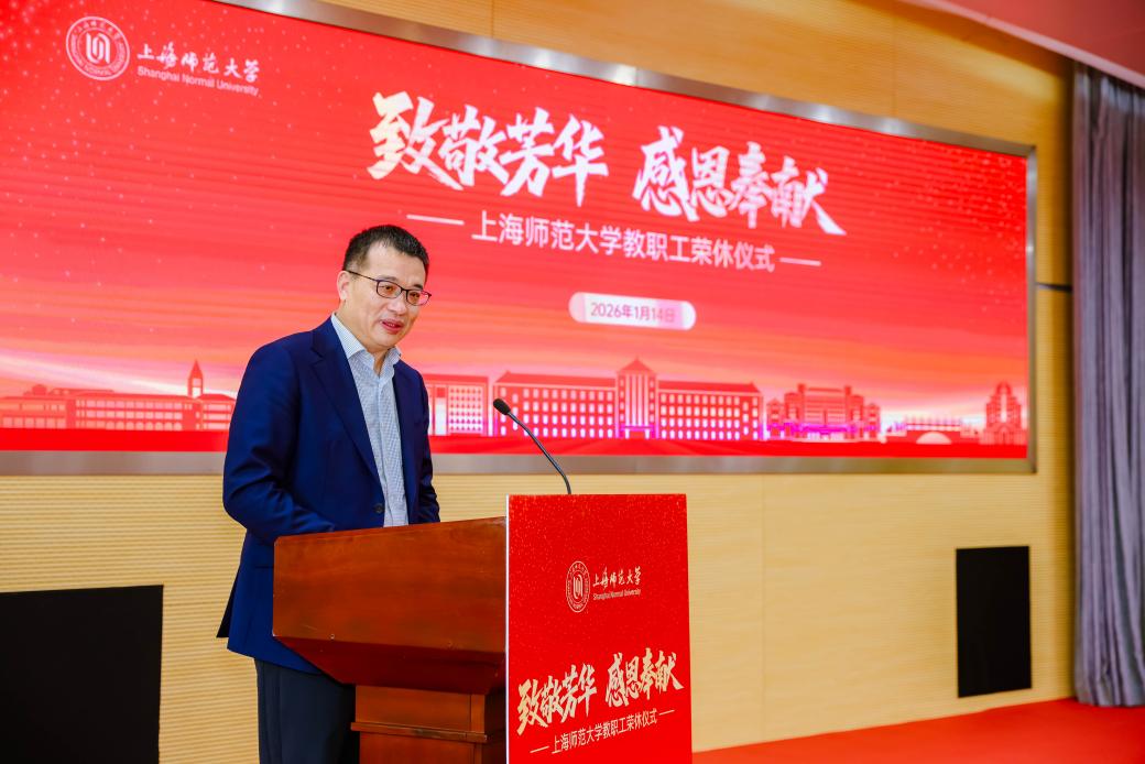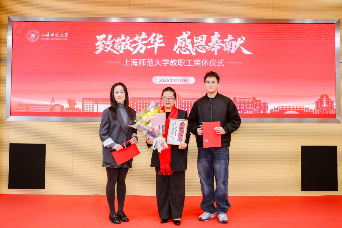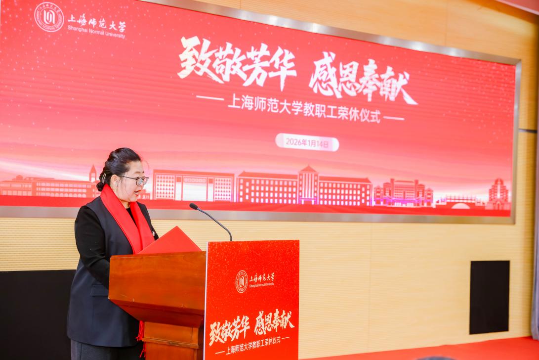 1月14日下午,学校在会议中心二号报告厅为2025年下半年荣休的教职工举行庄重而温馨的荣休仪式。在校长陈恒、校党委副书记杨海燕、副校长蒋明军、相关职能部门与二级单位负责人、青年师生代表和亲友们的陪伴下,荣休教职工一一登台,接受学校的感谢和敬意。党委教师工作部部长贺朝霞主持仪式。