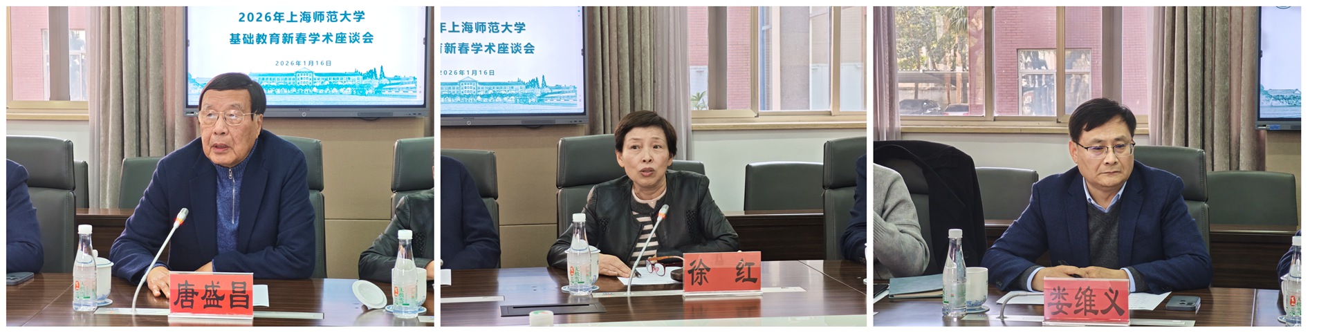 1月16日下午,2026年上海师范大学基础教育新春学术座谈会在徐汇校区西部外宾楼101会议室举行。本次座谈会的主题是:“这个时代需要什么样的教育家?怎样培养未来的教育家?上海师范大学有何作为?”座谈会邀请了上海中学原校长唐盛昌,上海市实验学校原校长徐红等十位校长参加。我校党委副书记、校长陈恒,校党委常委、副校长李晔,学校办公室、校友会、基础教育处和基础教育发展研究院全体成员参加。