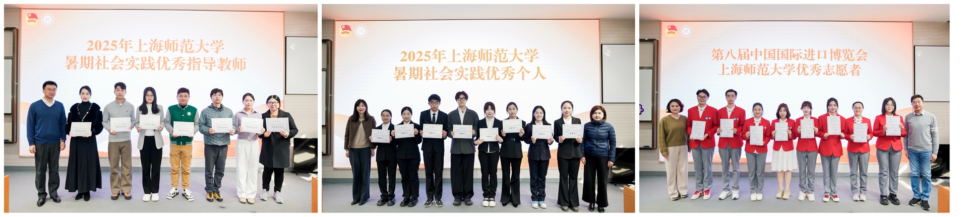 2025年,在社会实践和志愿服务中,志愿者们初心不改,实干不辍,用实际行动诠释“奉献、友爱、互助、进步”的志愿精神,起到了模范带头作用。活动现场表彰了暑期社会实践最佳组织奖、优秀指导教师、优秀个人以及第八届进博会优秀志愿者代表。