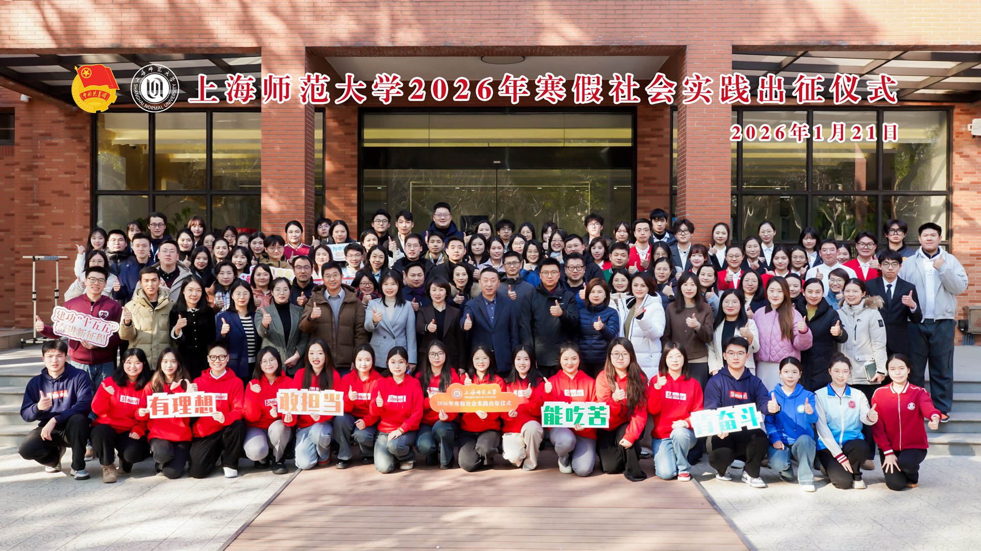 1月21日下午,上海师范大学2026年寒假社会实践出征仪式在徐汇校区举行。校党委副书记、副校长朱惠军,组织部、宣传部、学工部、研工部、团委、教务处等职能部门负责人,以及各学院学生工作副书记、负责人、团委书记、教师及学生代表参加本次活动。