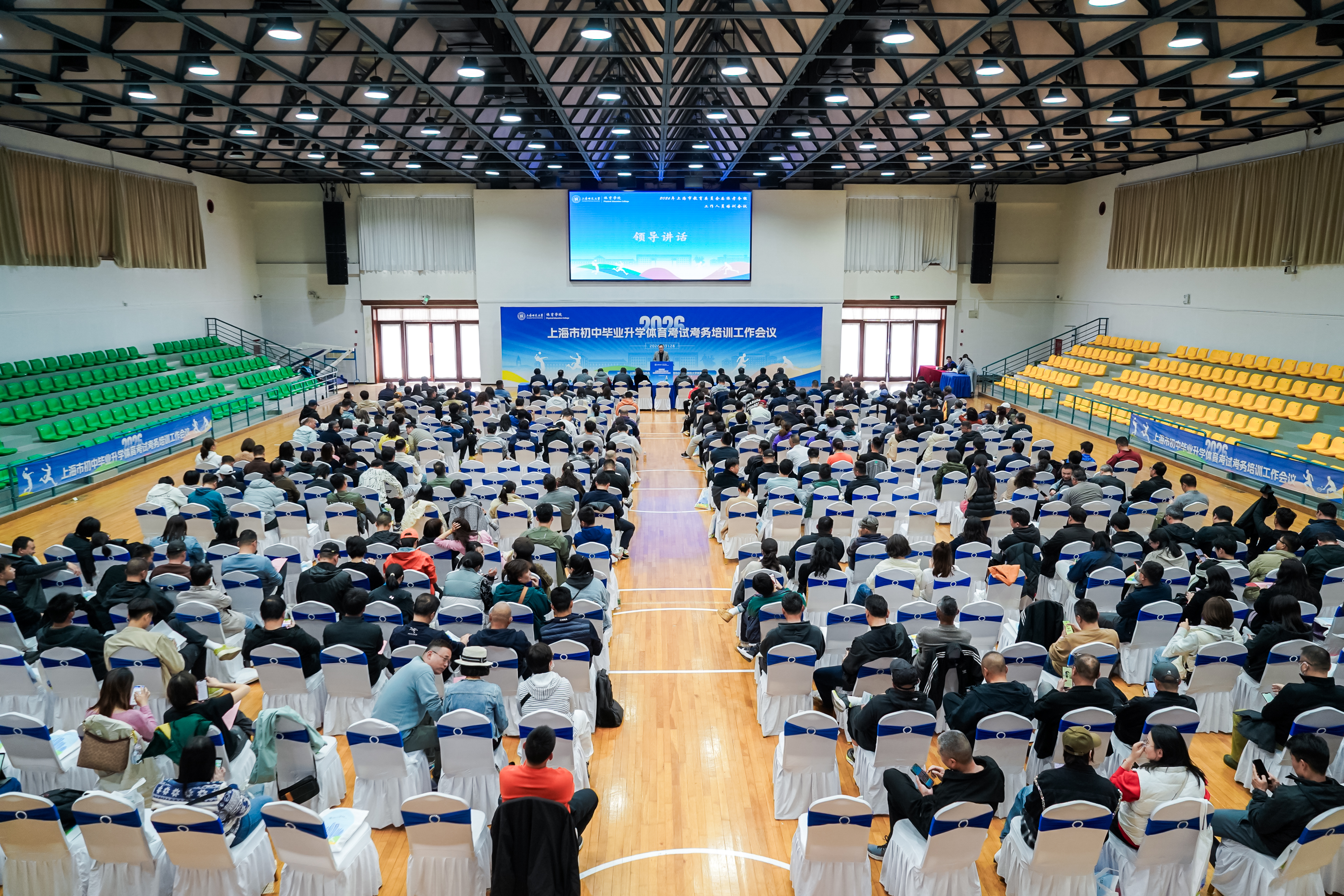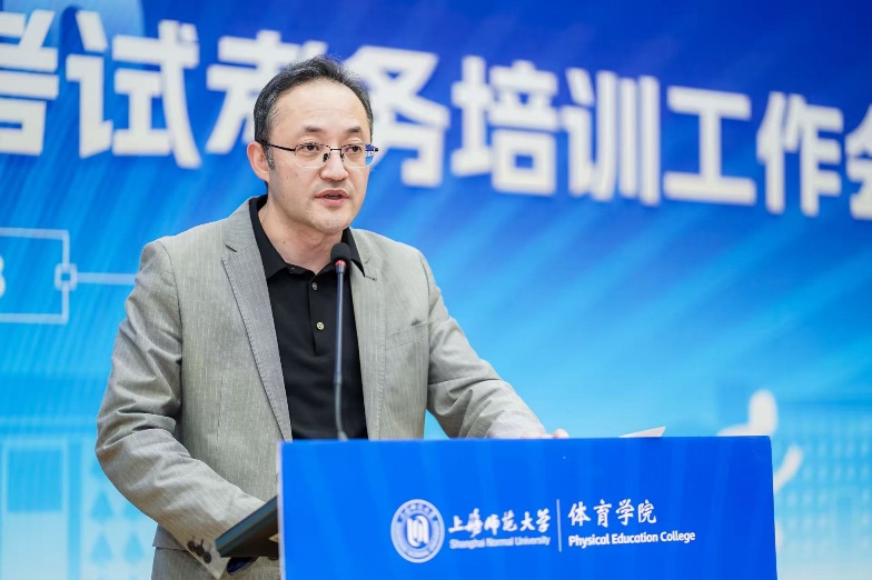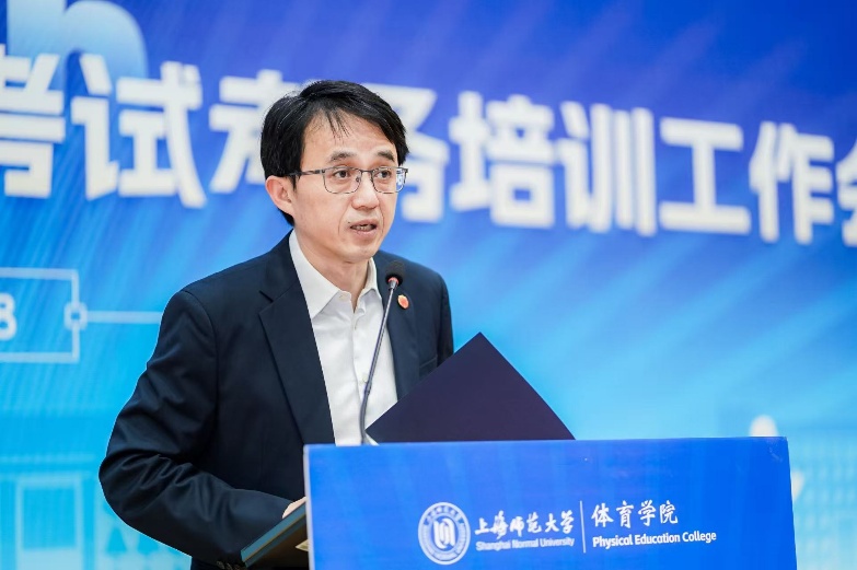 3月28日,2026年上海市初中毕业升学体育考试考务培训工作会议在我校西部球类馆召开。上海市教育委员会体卫艺科处处长南少华,上海市教师教育学院初中体育教研员王立新,上海市科技艺术教育中心体育活动部部长黄孙巍,以及本市特级教师、正高级教师代表和上海师范大学体育学院相关领导出席会议。来自各区教育局的体育负责人、教研员及考务人员等参加会议。会议由上海师范大学体育学院院长薛原主持。
