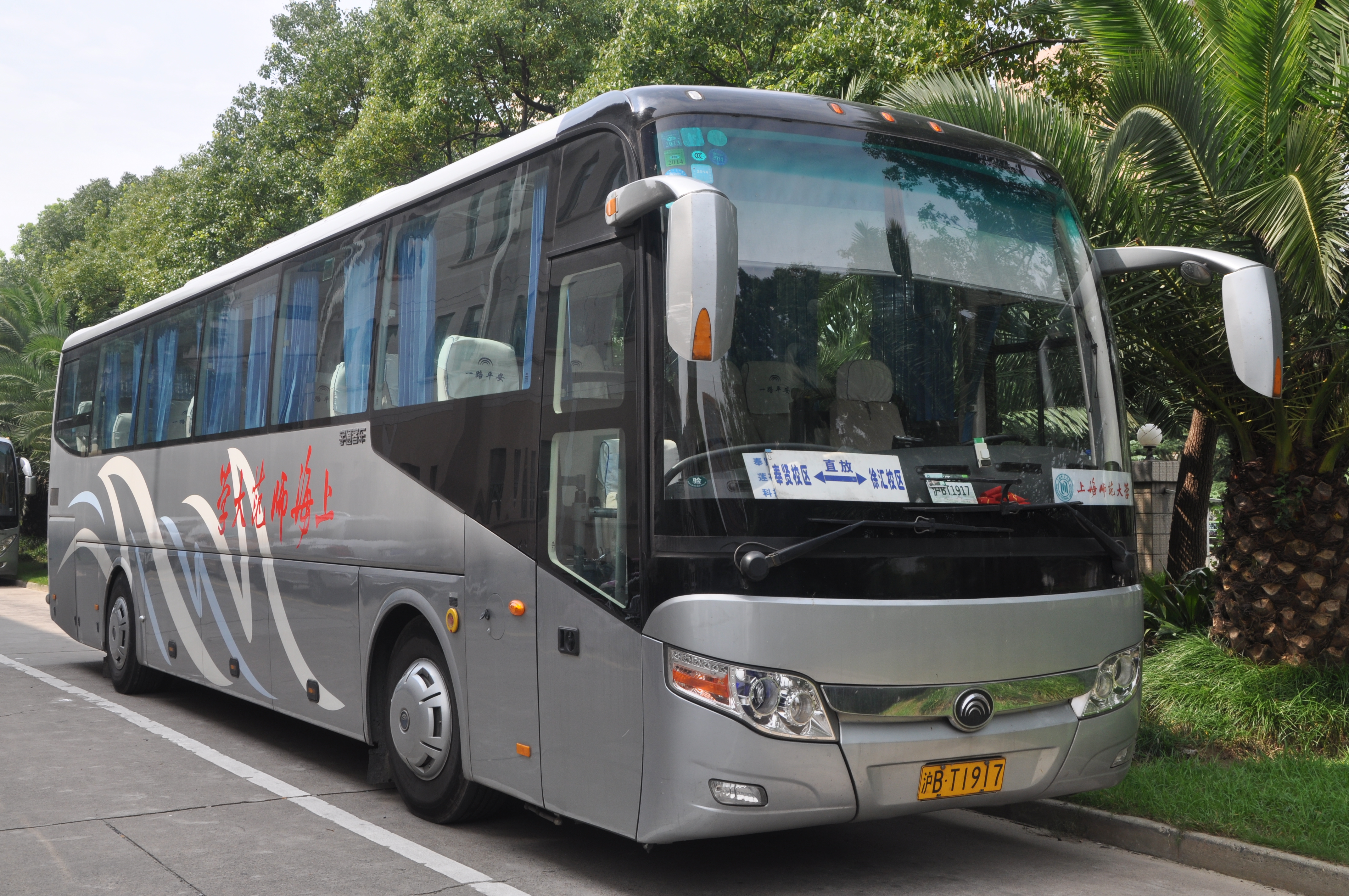 请广大教职员工及时关注服务车辆的外观及标识(见图)。并请广大教职员工根据时刻表提前候车、有序刷卡上车。