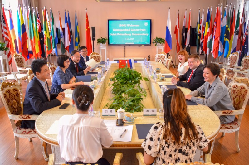 袁雯对圣彼得堡国立音乐学院的来访表示欢迎,并简要介绍了上海师范大学办学和学科建设、音乐艺术等优势学科以及学校对外交流与合作情况。她指出,中俄是山水相连的友好邻居,两国人民的传统友谊源远流长。多年来,上海师范大学凭借着自身在艺术等学科方面的优势,与俄罗斯多所院校开展了长期友好的合作。期望未来能够在艺术学科领域,与圣彼得堡国立音乐学院开展更为广泛而深入的合作。