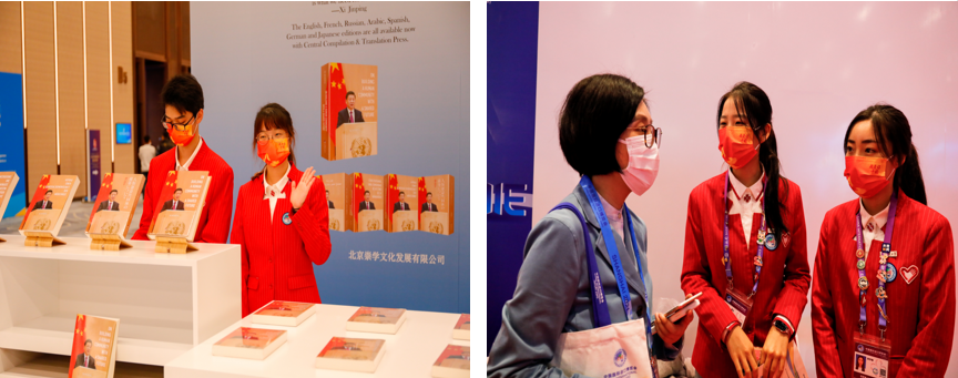 在此次进博会中国主题书展中,书籍介绍指引岗位的志愿者们也扮演着重要的角色,他们在展会现场向参会嘉宾推介中国主题书籍,对外讲好中国故事。防疫宣传监督岗志愿者负责在应急处置点进行“核酸检测证明”人工核验,做好现场补位工作。