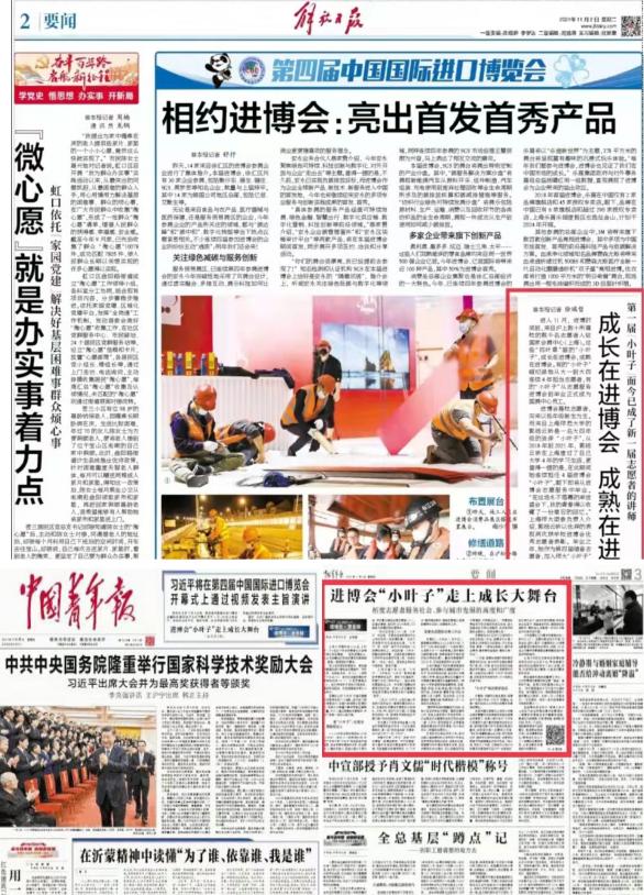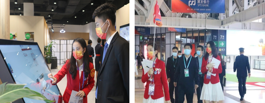 内外宾接待核心联络员主要负责统筹各内外宾需求对接、线路规划、引导接待等具体相关事宜,接待重要领导嘉宾观展,内宾接待组志愿者则负责为重要内宾提供场内接待咨询服务。他们化身进博会的资深“小导游”,将每个场馆,每条线路都熟记于心。