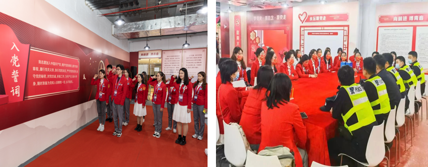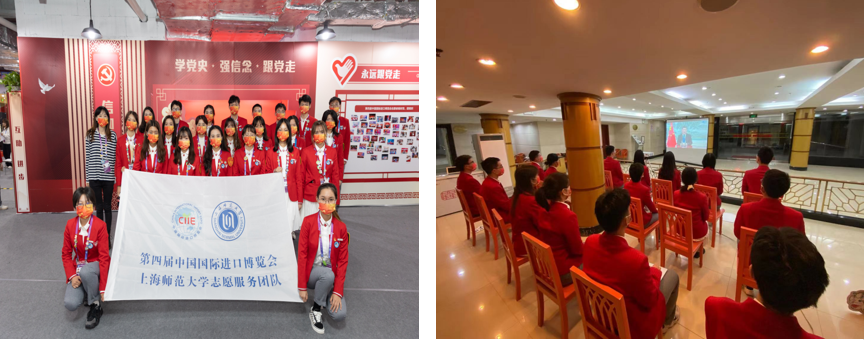 11月8日,志愿者们在国家会展中心开展“知党史,行进博”主题党日活动和主题团日活动,进博会志愿者在服务期间重温入党誓词、入团誓词。志愿者们在志愿服务中展现出当代青年志愿者的无私奉献和担当,学校还开展了“青春护进博,岗位建新功”警校交流活动。