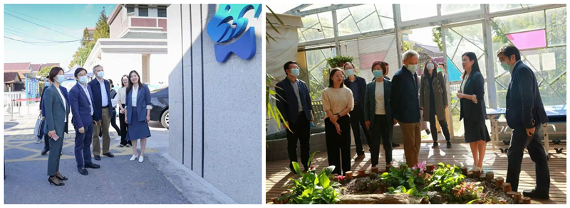 杨振峰一行在附属奉贤实验中学副校长(主持工作)包蓓姹的引导下实地走访了校园,参观了学校中厅、小剧场、理化实验室、图书馆等教育教学场地,详细询问师大附中的办学情况,对学校标准化的设施设备和“人人皆可成才”的办学理念表示赞许。