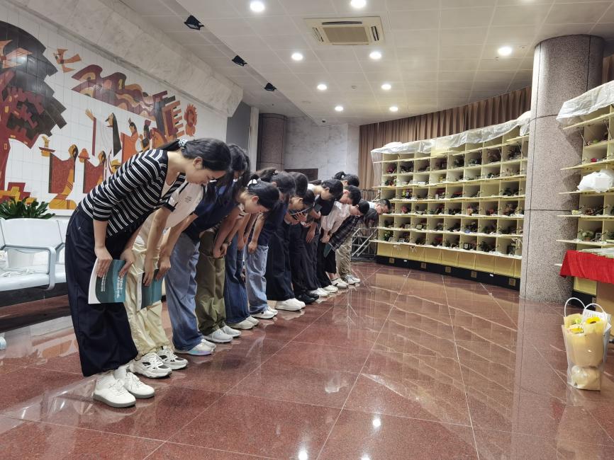 活动尾声,支教团成员代表向两位烈士敬献鲜花,全体默哀,以寄托对英烈的哀思与敬仰。