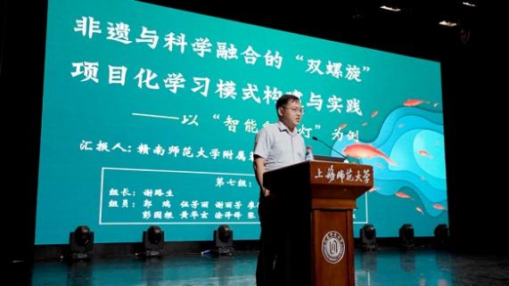 29日上午,项目化学习成果汇报和培训结班仪式在上海师范大学东部校区音乐厅举行。首先举行的是项目化学习成果汇报,由上海师范大学建筑工程学院副院长朱美春主持。在这个环节十个学员小组依次上台,进行了精彩的项目化学习成果汇报。学员们围绕“政策引领与资源融合下的科学教育实践创新之路”主题,展示了在培训期间形成的实践方案与研究结论,内容涵盖地域资源融合、技术赋能教学、同学段融合等多个维度,充分体现了学习的深度与实践的效度。
