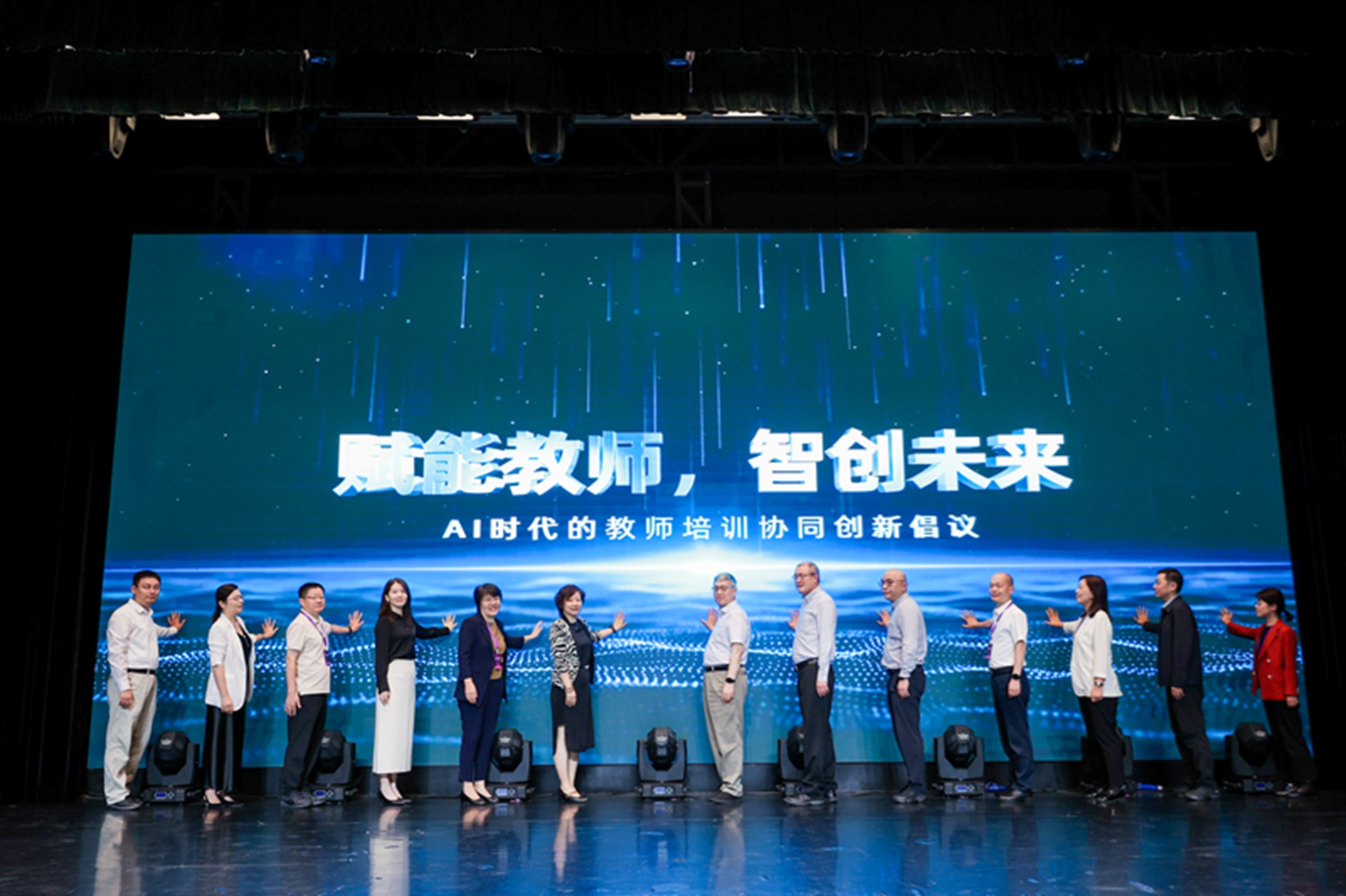 会上,中国教育学会教师培训者协作体常务副秘书长闫寒冰院长作为倡议代表宣读《赋能教师,智创未来:AI时代的教师培训协同创新倡议》。该倡议以“共建、共享、共研”为核心,确立AI时代教师培训的价值坐标、资源标准和行动路径,旨在凝聚政产学研各方智慧,打造开放、健康、可持续的全国教师培训新生态,为建设高素质专业化创新型教师队伍提供持久动能。上海市教育学会会长尹后庆、中国教育学会学术事务部主任朱婷及中国教育学会教师培训者协作体十一家副理事长单位代表共同发起倡议。
