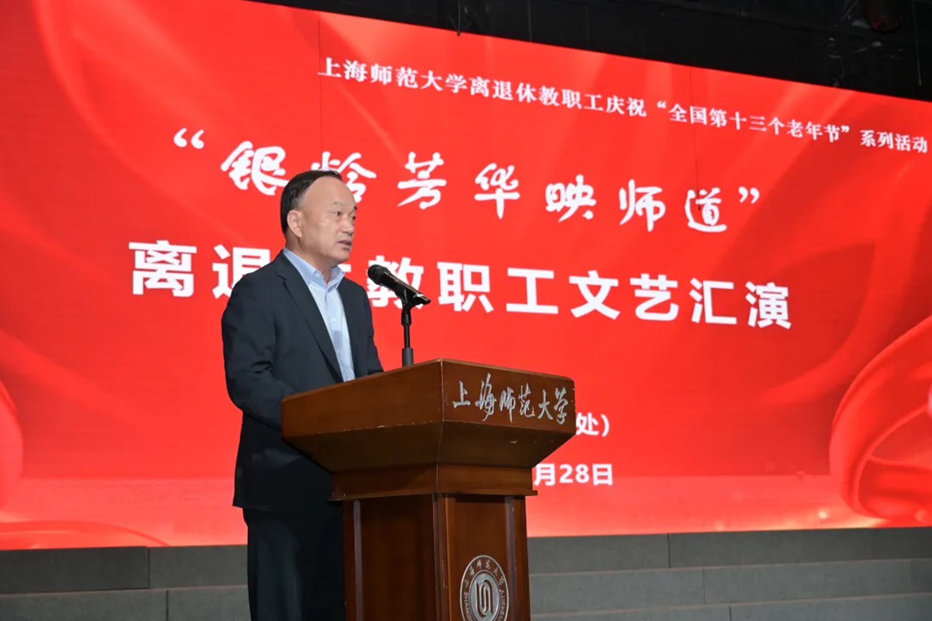 岁岁重阳,今又重阳,在全国第十三个老年节来临之际,为弘扬中华民族尊老、敬老、爱老的传统美德,丰富离退休教职工的精神文化生活,展示老同志老有所学、老有所乐的良好精神风貌,10月28日上午,作为敬老月系列活动之一的“银龄芳华映师道”离退休教职工文艺汇演在学校音乐厅举行。副校长蒋明军出席活动并致辞,活动由离退休工作部(处)部(处)长唐娟芳主持。
