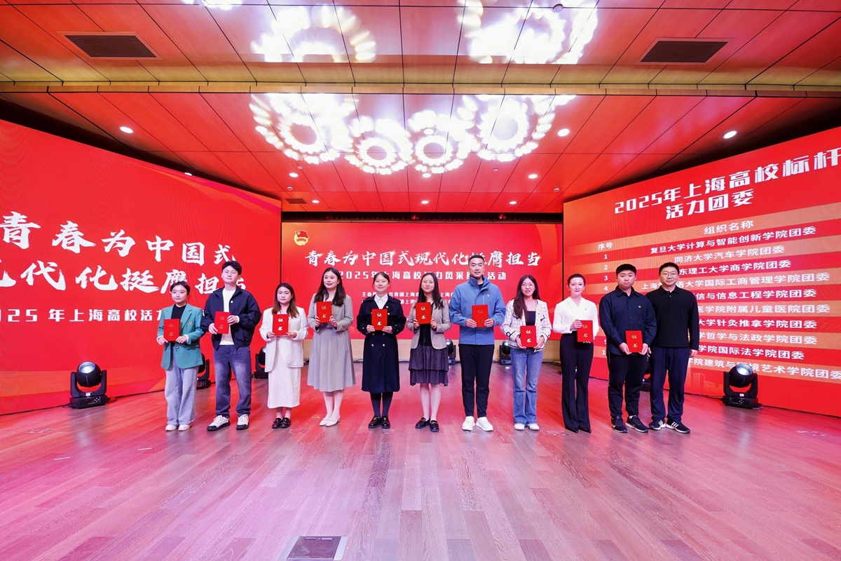 11月16日,2025年上海高校活力风采展示活动在上海对外经贸大学举办。来自全市6所高校的团组织、学生社团进行了现场展示。我校哲学与法政学院团委经校内推荐、团组织互访互学、市级综合评价,最终入选2025年上海高校活力团组织风采展示活动,获评2025年上海高校标杆活力团委(全市共10个)。