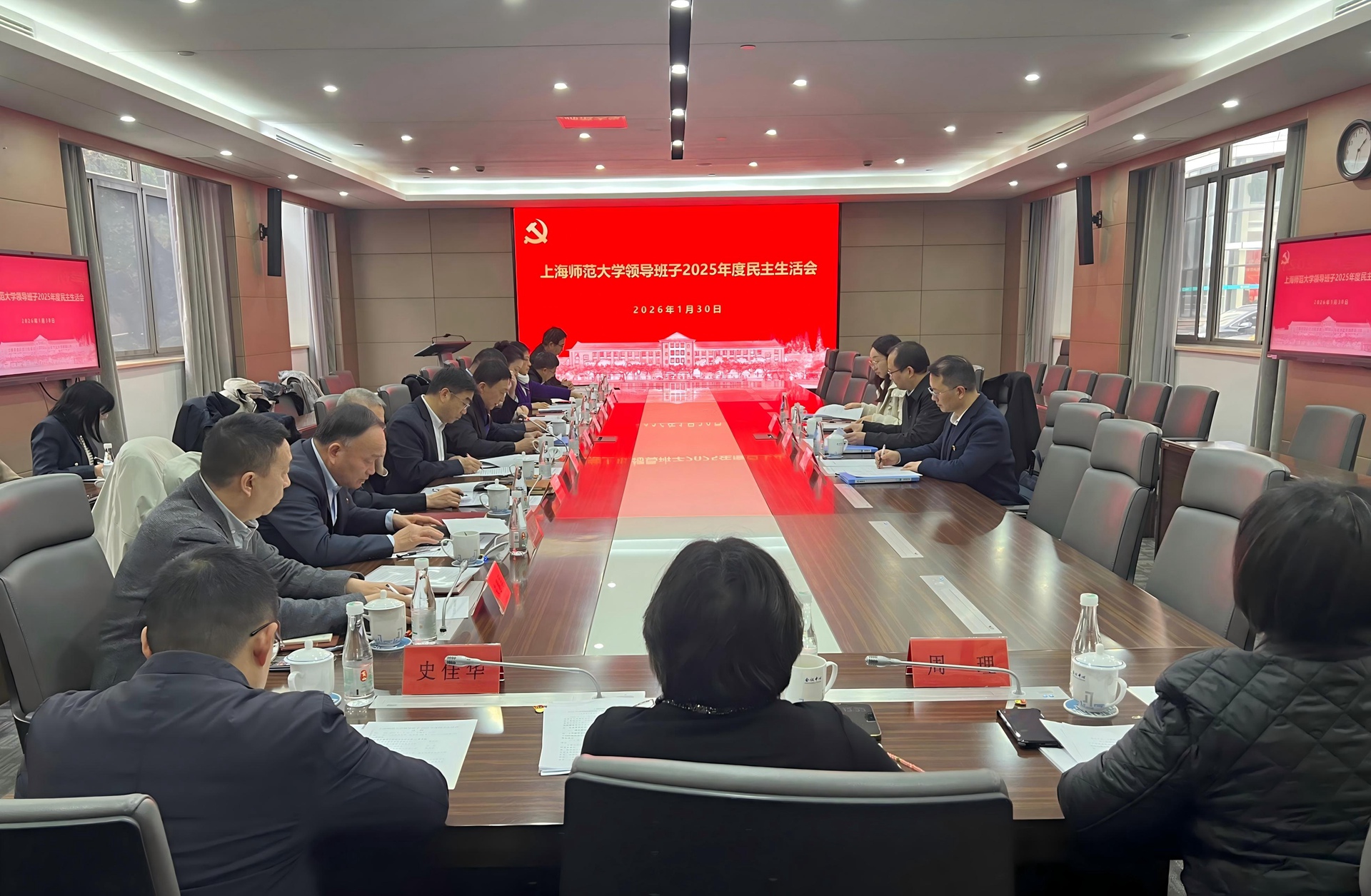 1月30日下午,学校在外宾楼101会议室召开校级领导班子2025年度民主生活会。市管党员领导干部民主生活会第31督导组组长、上海海事大学党委副书记曹荣瑞,组员赵睿、徐冰清到会指导。会议由校党委书记林在勇主持。学校党委领导班子成员参加,部分职能部门有关同志列席。