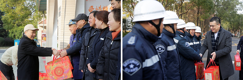 丙午马年新春将至,2月13日上午,校领导林在勇、陈恒、赵扬、蒋明军、曹光明及相关职能部门负责人,分别前往奉贤、徐汇校区走访慰问坚守岗位的一线教职员工,向他们致以节日问候和新春祝福。