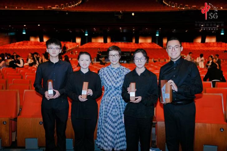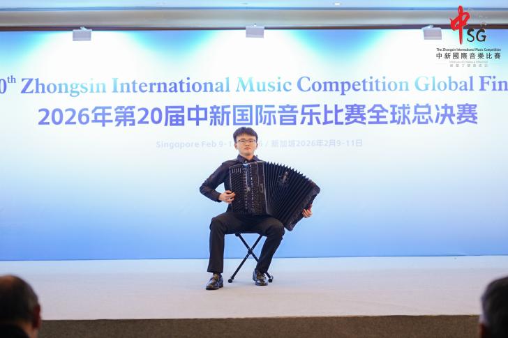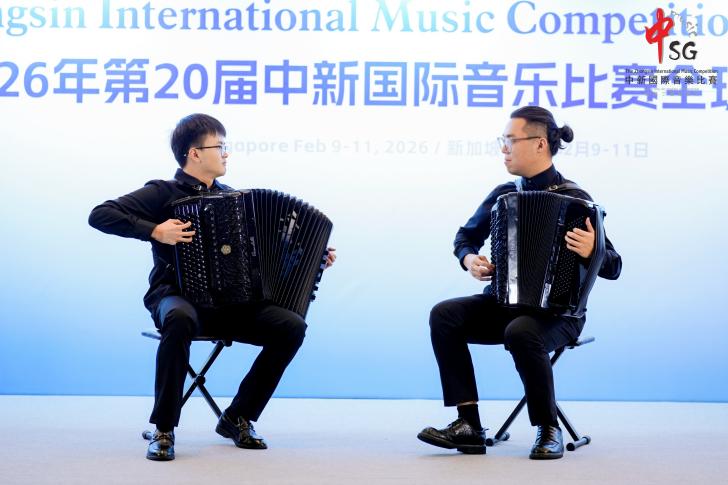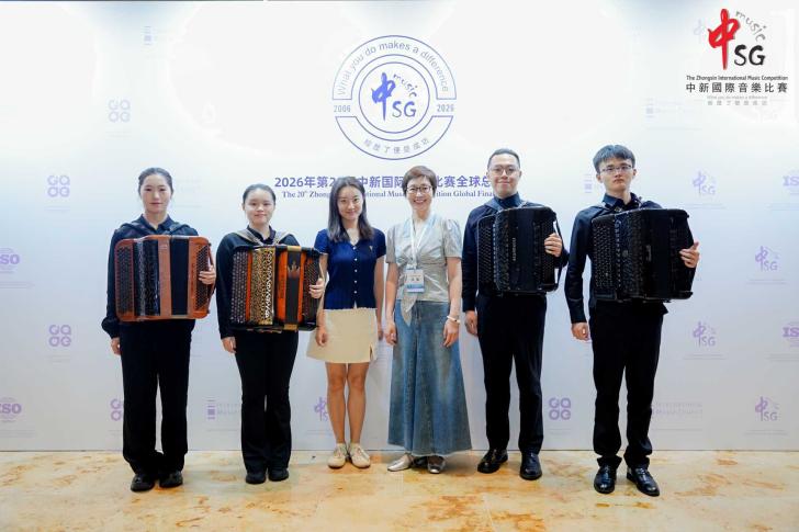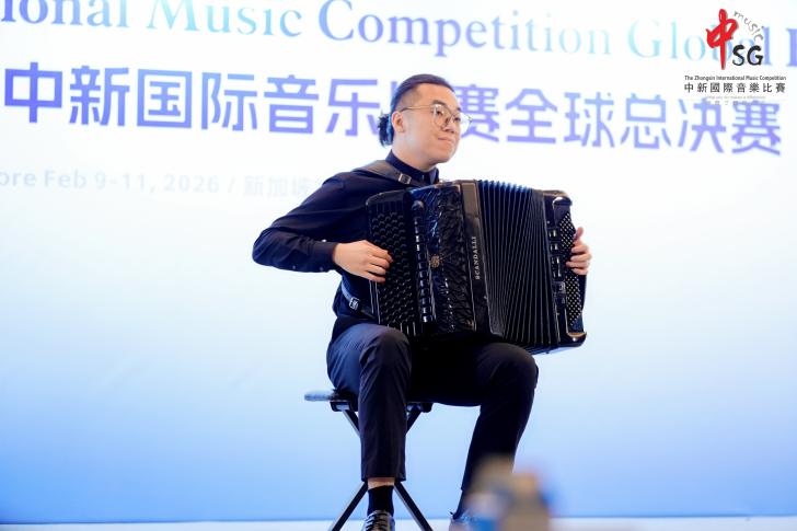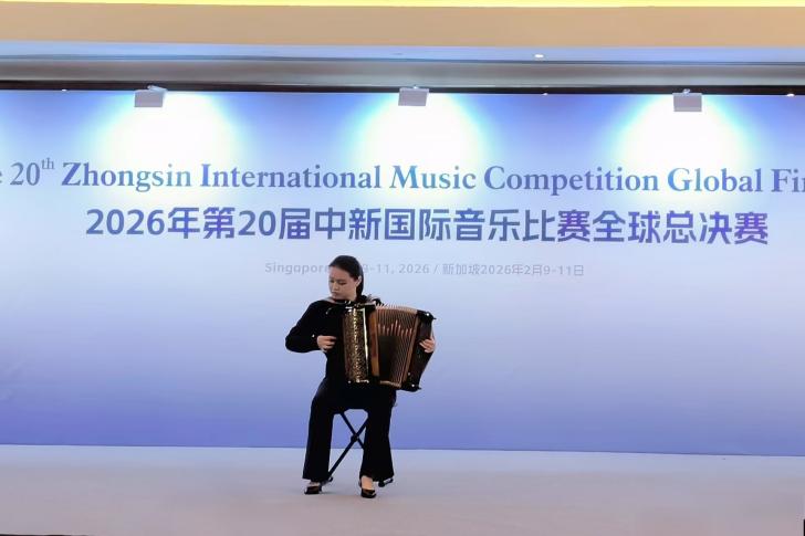 近日,在新加坡落幕的第20届中新国际音乐比赛全球总决赛上,我校音乐学院手风琴专业方向的四位学生:封景锐(2025级键盘艺术表演(手风琴)专业方向硕士研究生)、夏语婷(2024级本科音乐学(师范)专业)、徐弋朗(2024级本科音乐学(师范)专业)和施乾浩(2025级本科音乐学(师范)专业)在西乐系主任王从余副教授及手风琴专业教师时璇老师的悉心指导下,凭借精湛的技艺与出色的舞台表现力,在该项国际赛事中脱颖而出,分别获得了开放作品组、自选流行作品组、自选民族作品组以及自选重奏/合奏组一等奖。值得一提的是,经国际评审团综合评分,封景锐同学最终以开放作品组最高分的优异成绩,斩获本届赛事最高荣誉。西乐系主任王从余副教授应邀担任赛事评委。