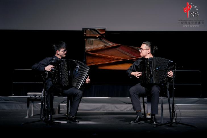 本届比赛颁奖晚会暨闭幕式在新加坡星宇表演艺术中心举行。封景锐与施乾浩同学作为本届比赛获奖选手代表,登台演绎了手风琴二重奏《吉普赛女孩》,展现出扎实的音乐素养与生动的舞台表现力,充分彰显了上海乃至中国手风琴艺术在国际舞台上的良好形象与综合实力。