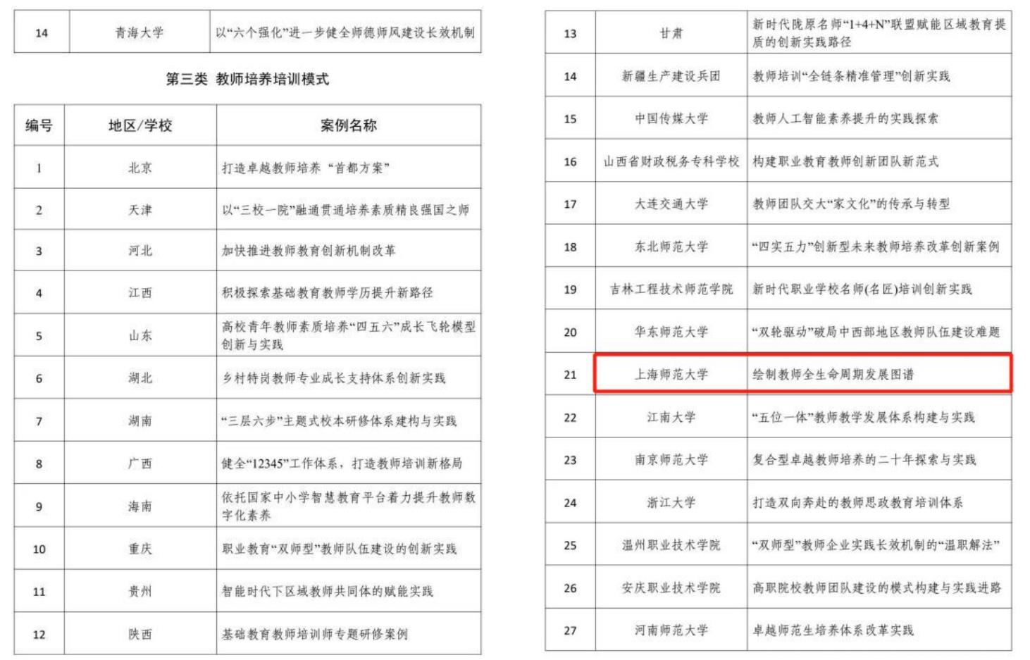 近日,教育部发布“新时代高水平教师队伍建设创新案例(2025)”,我校人事处报送的“绘制教师全生命周期发展图谱”成功入选“教师培养培训模式”领域全国创新案例,充分彰显了学校在创造性探索高校教师培养培训新模式,构建系统化、精准化、可持续教师发展支持体系方面的实践成效与全国示范价值。