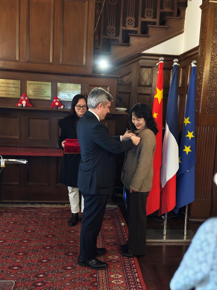 3月31日,法兰西共和国学术棕榈骑士勋章授勋仪式在法国驻上海总领事官邸“巴赛别墅”举行。法国驻上海总领事Joan Valadou先生主持仪式,并代表法国国民教育部长向我校影视传媒学院王方教授授予法兰西共和国学术棕榈骑士勋章(Chevalier de l’Ordre des Palmes académiques)。法国驻上海总领事馆文化教育处教育领事、前文化领事、专员和多位嘉宾共同出席仪式。